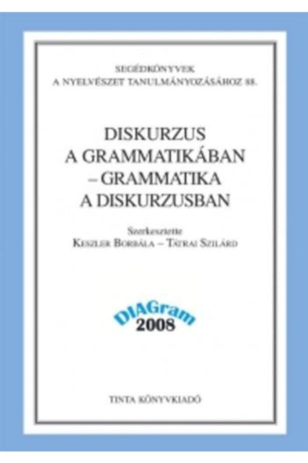 A Diskurzus a grammatikában - grammatika a diskurzusban című tanulmánykötet az azonos címmel 2008 novemberében megrendezett konferencia előadásainak kibővített, részletesebben kidolgozott változatait tartalmazza. Bár tematikus hangsúlyai mások, jelen kötet a Szöveg, szövegtípus, nyelvtan (Tinta Könyvkiadó, 2008) című kötetben megkezdett szakmai diskurzust kívánja folytatni.