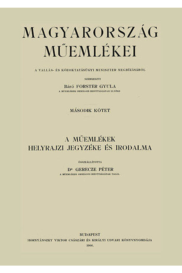 Forster Gyula szerkesztésében megjelent 4 kötetes munka Magyarország legfontosabb műemlékeit mutatja be, illetve egy kötetben a Kárpát-medence műemlékeinek jegyzékét adja közre megyénkénti felsorolásban. Gazdagon illusztrált, adatgazdag, ma is forrásértékkel bíró mű.